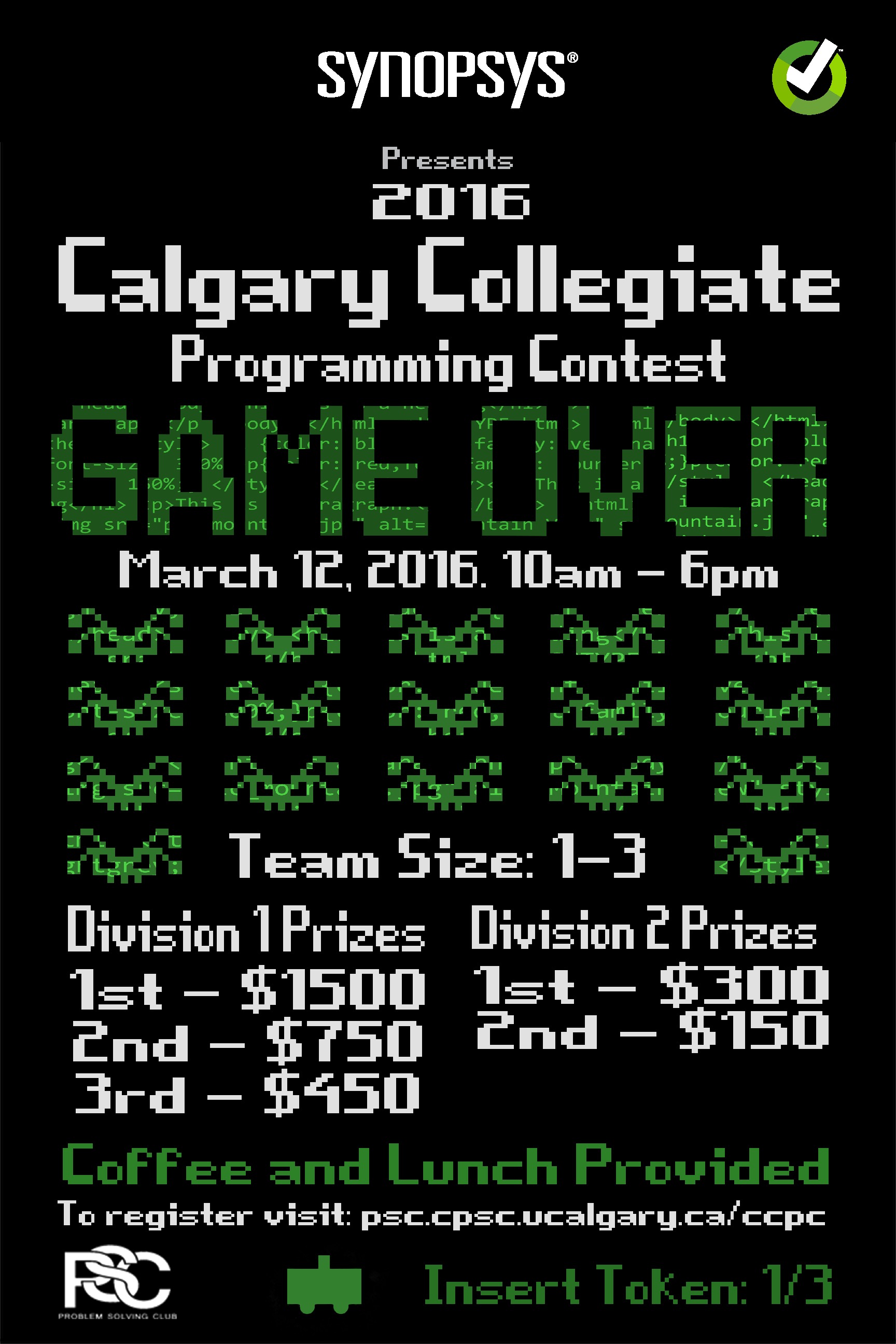 The CCPC is just around the corner! This year we are hosting 2 divisions so all levels of experience is welcome. Registration is free. Lunch will be provided and Synopsys is sponsoring the contest. So don't hold back and sign up before Thursday, March 10.