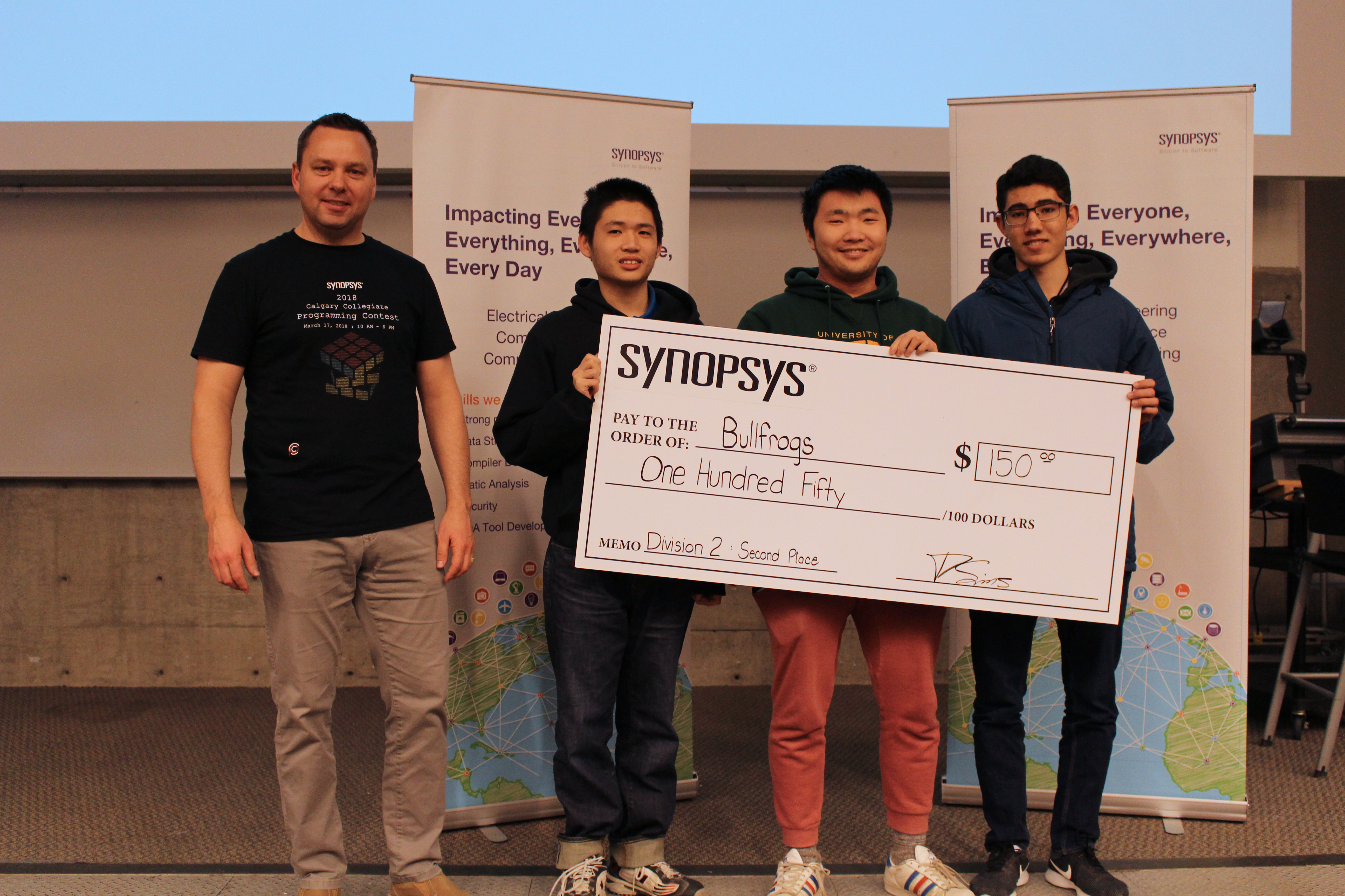 The Calgary Collegiate Programming Contest (CCPC) provides post-secondary students in Calgary with the opportunity to excel in an ACM ICPC-style programming competition. Students test their aptitude and knowledge against a set of programming puzzles requiring problem-solving, programming, math, and teamwork skills. Teams are ranked according to the number of problems solved within four hours. The CCPC is sponsored by Synopsys and provides a platform for the next generation of computing professionals to pursue excellence. Kattis has graciously sponsored the judging platform.